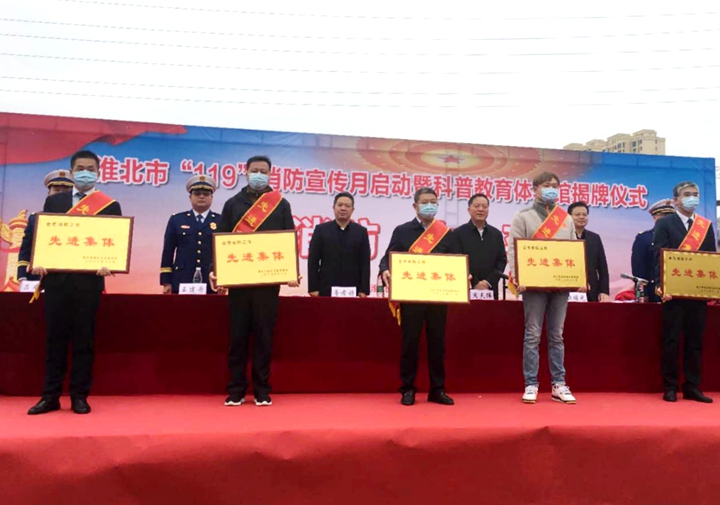 11月5日上午,在淮北市“119”消防宣傳月活動啟動暨市消防科普教育體驗館揭牌儀式上,淮北礦業集團榮獲“全市消防工作先進集體”稱號。