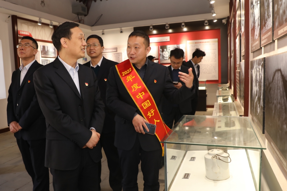 雙方人員深入到淮海戰(zhàn)役總前委舊址韓村鎮(zhèn)小李家和臨渙鎮(zhèn)文昌宮進行了實地參觀,接受紅色教育。黨員們聆聽了淮海戰(zhàn)役總前委舊址小李家第三代守護人李華松的深情講述,走進一間間展室參觀,接受了一次深刻的黨性教育和精神洗禮。共建活動,還專門邀請了曾經(jīng)在臨渙礦工作過15年的“中國好人”周揚,與大家分享他多年來從事淮北地區(qū)淮海戰(zhàn)役歷史研究的收獲和為50余名烈士尋親的感人事跡。全體參加活動的黨員們還一起重溫了入黨誓詞。