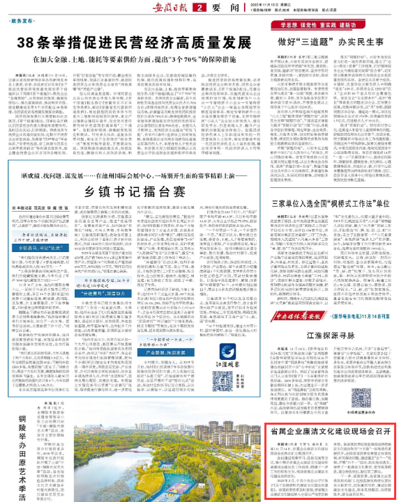 11月14日,安徽省屬企業(yè)廉潔文化建設(shè)現(xiàn)場會在淮北礦業(yè)集團召開。會議通過觀摩學(xué)習(xí)、經(jīng)驗交流等方式,集中展示省屬企業(yè)廉潔文化建設(shè)和清廉國企建設(shè)的工作成效,明確下一步工作目標(biāo)和方向,推動省屬企業(yè)廉潔文化建設(shè)走深走實,不斷優(yōu)化凈化國有企業(yè)政治生態(tài),為國資國企高質(zhì)量發(fā)展提供堅強保障。