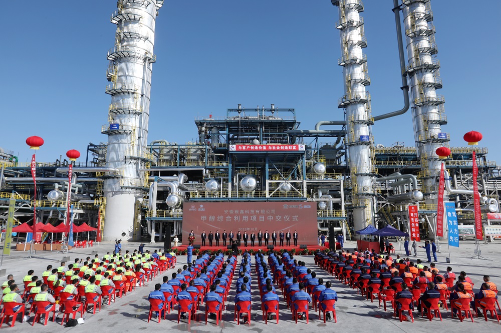 10月20日,碳鑫科技公司舉行甲醇綜合利用項(xiàng)目中交儀式,由施工建設(shè)階段全面轉(zhuǎn)入生產(chǎn)準(zhǔn)備階段。(王明明 攝)