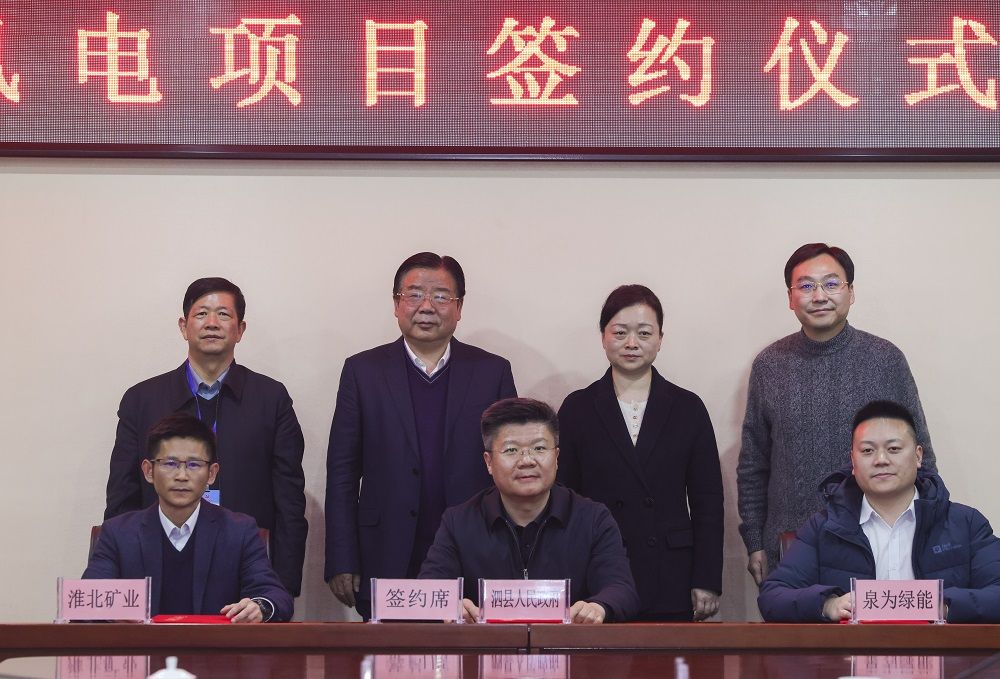 2月14日,淮北礦業(yè)集團(tuán)與泗縣人民政府、泉為綠能投資(海南)有限公司舉行三方簽約儀式,順利簽約300兆瓦泗縣風(fēng)電項(xiàng)目。淮北礦業(yè)集團(tuán)黨委副書記、總經(jīng)理孫方,淮北礦業(yè)副總經(jīng)理陳亞?wèn)|;泗縣縣委副書記、縣長(zhǎng)王汝娜,縣委常委、副縣長(zhǎng)王躍明,以及泉為綠能投資(海南)有限公司、上海贏古資產(chǎn)管理公司負(fù)責(zé)人出席了簽約儀式。