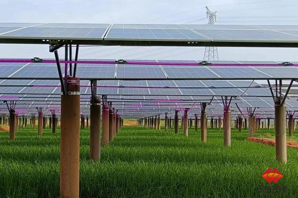國家能源集團(tuán)廣西公司開展的實(shí)驗(yàn)項(xiàng)目,是在非基本農(nóng)田的旱地基礎(chǔ)上加以改造,土壤達(dá)到水稻生長要求,在保證正常發(fā)電的情況下,從光伏發(fā)電中獲取少量電能直供LED植物燈,補(bǔ)償光伏板遮擋而減少的自然光照,為水稻光合作用和健康生育提供適宜光照。項(xiàng)目通過持續(xù)6~8季水稻的生產(chǎn)性試驗(yàn)和數(shù)據(jù)分析,探索光伏發(fā)電與主糧(水稻)生產(chǎn)的適宜模式,并構(gòu)建相關(guān)預(yù)測決策模型,為基于主糧安全生產(chǎn)的大面積光伏發(fā)電的新模式應(yīng)用提供科學(xué)依據(jù)、預(yù)測與決策支持。