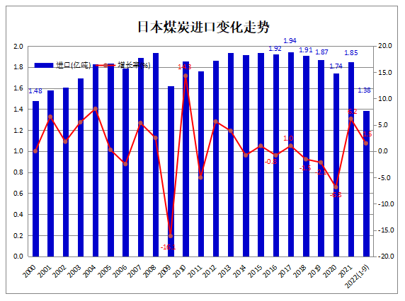 2022年1-9月日本煤炭進口同比增長1.5%