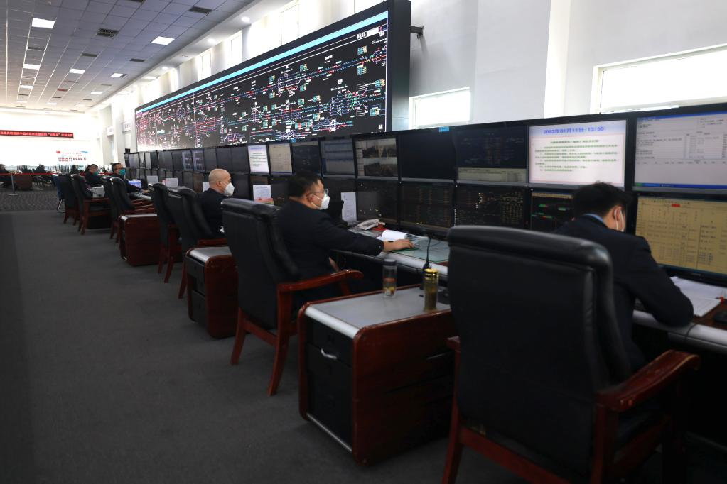 湖東站集控樓內(nèi)工作人員正在忙碌。(中國(guó)鐵路太原局集團(tuán)有限公司供圖)
