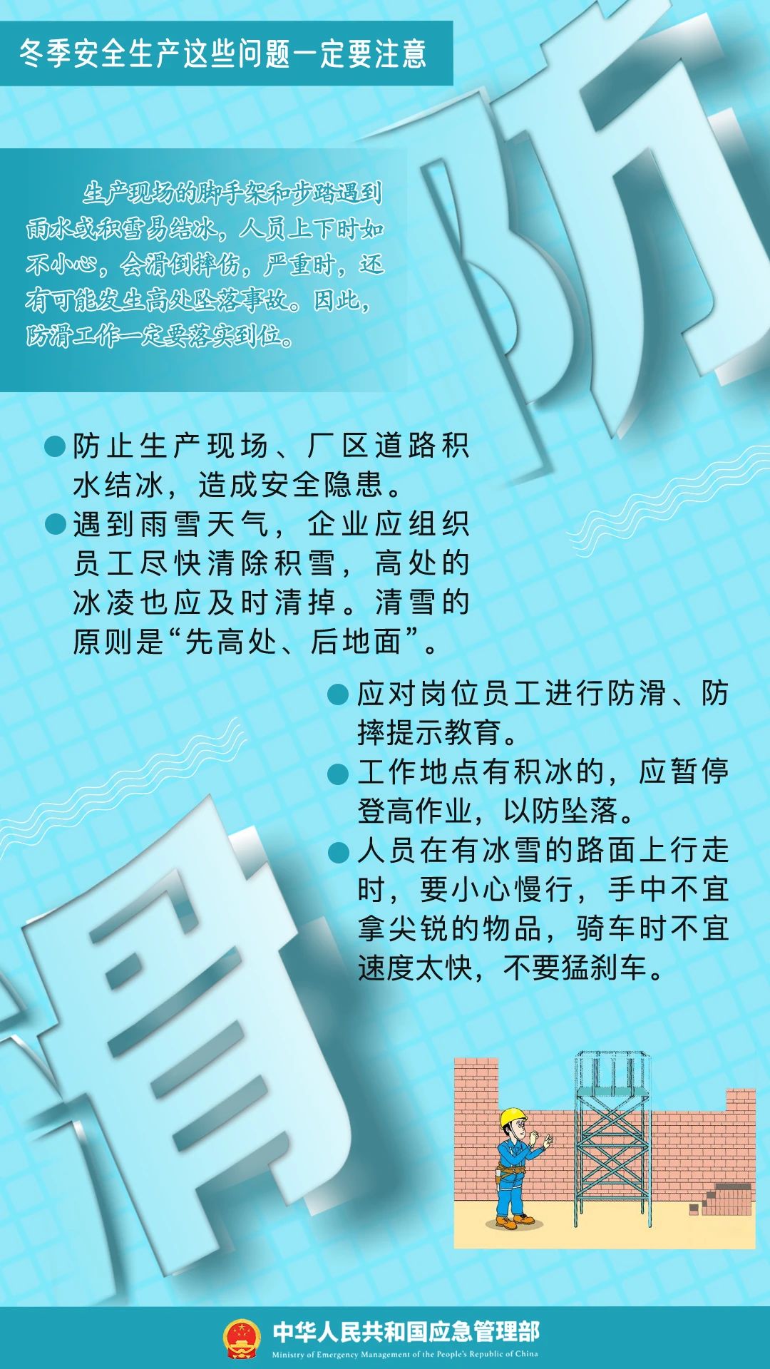 冬季寒冷、干燥,容易發生凍傷、中毒、滑跌等人身傷害事故,給企業安全生產帶來影響。冬季安全生產要注意哪些問題?一起學習↓↓↓